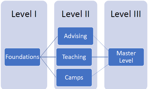 After completing Level I, participants will be eligible to start Level II of the Academy program, which will feature individualized pathways specifically designed for activity advisors, leadership teachers, and summer workshop/camp staff members. Individuals may elect to enroll in one, two, or all three of the Level II pathways, depending on their needs and their roles.