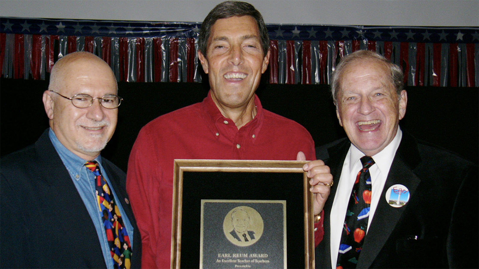 One of our past National Earl Reum Award recipients was the late Harry Bettencourt of California, who was presented this award by Rocco Marano (left) and Dr. Earl Reum himself (right) in December 2006. Harry served on our Board of Directors for many years and was an inspiration to activity advisers and student leaders not only in California but throughout the nation.
